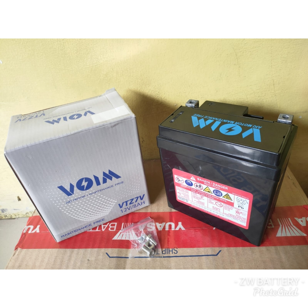 AKI MOTOR ORIGINAL VOIM VTZ7V / YTZ7V / GTZ7V / MTZ7V MF. 12 VOLT 8 AMPERE, GARANSI 1 BULAN !! ASLI DI PRODUKSI LANGSUNG OLEH PT. MOTOBATT INDONESIA, JADI KUALITAS HAMPIR SAMA DENGAN MOTOBATT!! AKI YANG SAMA DENGAN BAWAAN MOTOR ANDA!! AKI FULL KERING LANGSUNG SIAP PAKAI DAN SIAP STATER!!