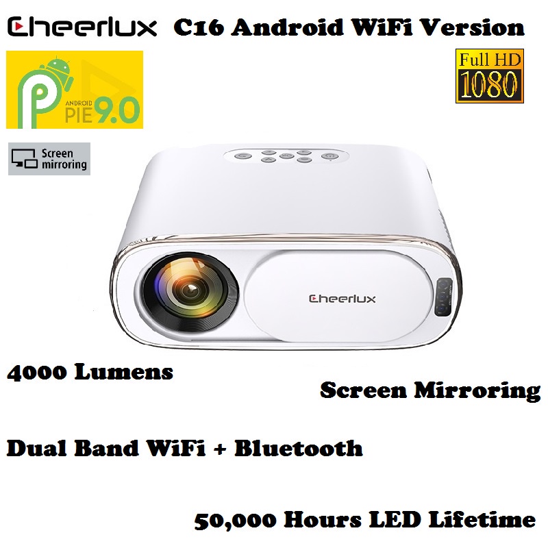 CHEERLUX C16 Android Version ini merupakan versi terbaru dari C16 Basic dan C16 WiFi Mirroring Display yang dibekali dengan penambahan fitur yakni hadirnya sistem operasi Android 9.0 sehingga Anda dapat menginstall aplikasi-aplikasi di dalam proyektor ini.