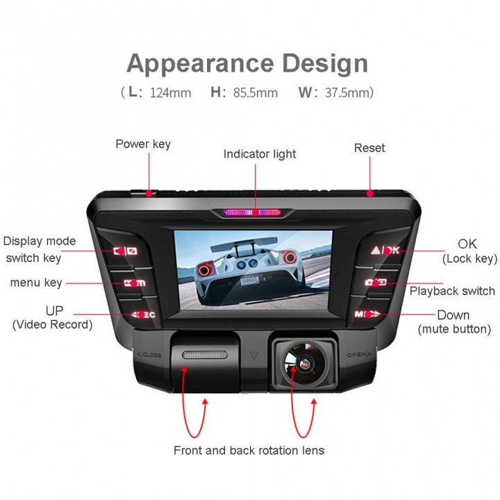 Ini adalah kamera mobil dengan dua kamera yang bisa dirotasi untuk melihat ke depan mobil maupun ke dalam mobil dengan resolusi yang sanga tinggi. Dengan lensa keluaran SONY IMX323, kualitas gambar yang dihasilkan bisa mencapai Ultra HD 4K (2880x2160), lebih tinggi 2x lipat dari HD (1080P). Jika dual-lens digunakan bekerja bersamaan, bisa support hingga 1080P Full HD (double shooting).