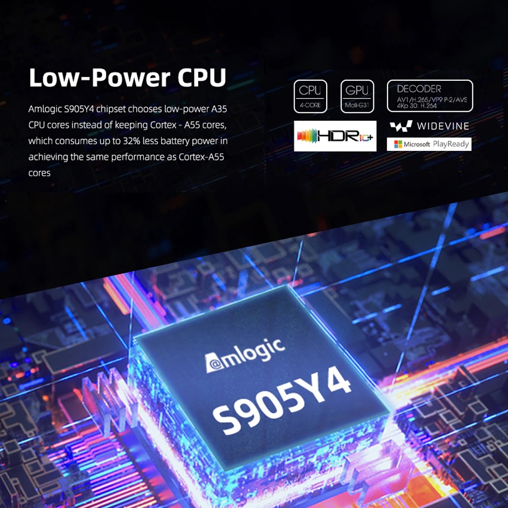 Main Features: - Netflix certified, support Netflix 4K streaming - Instant access to AV1 encoded and 4K HDR content - Runs Android 11 on the latest Amlogic S905Y4 - Built-in Google Assistant & Chromecast - Support HDR10 - Support timely OTA updates - Light and portable