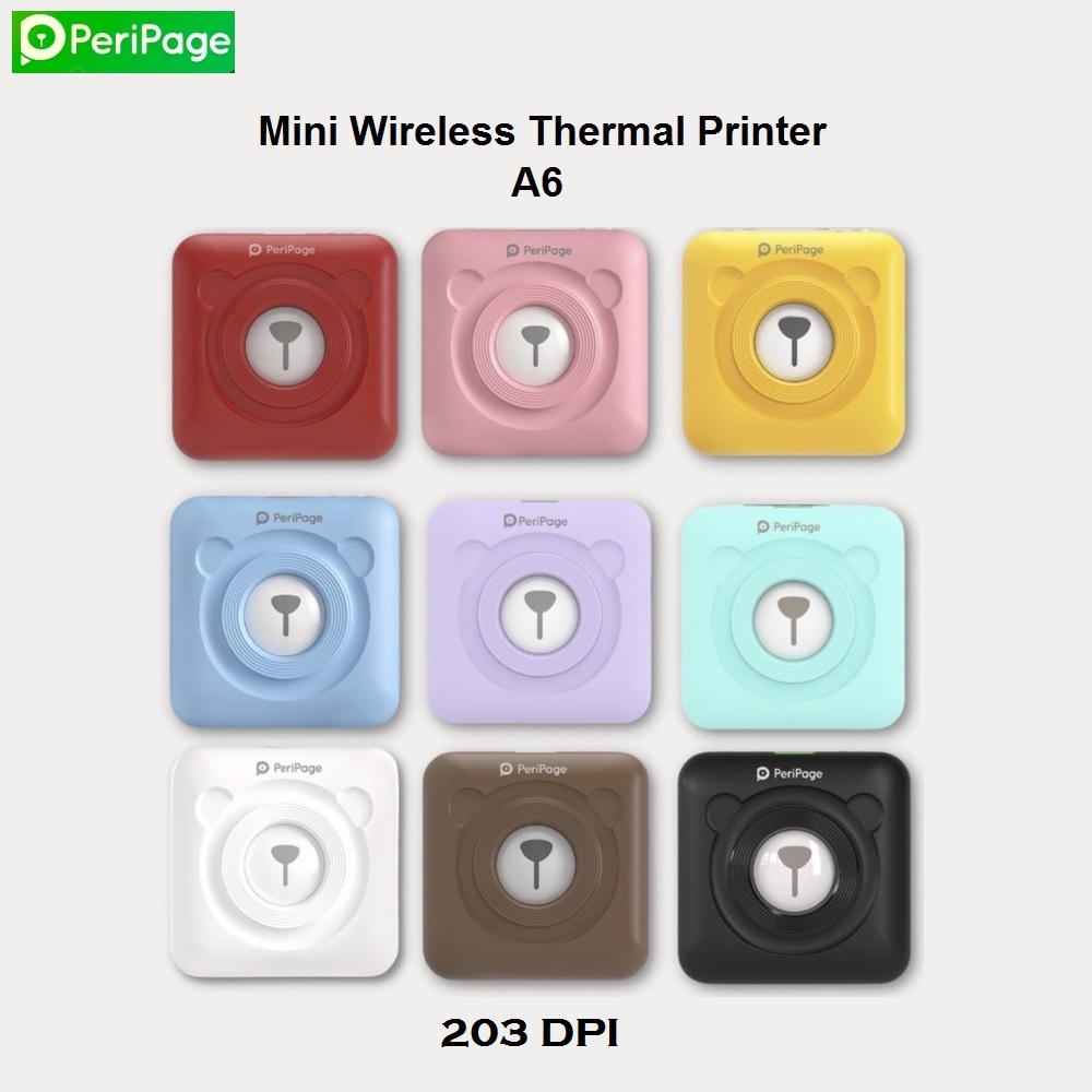 Specification Brand: PeriPage Product Name: Mini Printer Product Model: A6 Resolution: 203 DPI Connection: Bluetooth connection or USB connection to Windows Printing Speed: Max. 15mm/s Paper Rolls: Width less than 56mm, diameter less than 30mm Paper Supported: Notes Paper/Sticker/Label/Photo Paper Battery Capacity: 1000mAh Charging Interface: Micro USB Working Time: 24 hours Charging Time: 1.5 hours Standby Time: 7 days