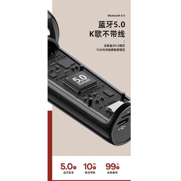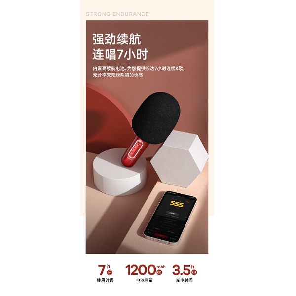 Specification Brand: REMAX Product Type: Handheld Wireless Microphone Product Name: Mogoo Series Product Model: K07 Input: DC 5V/1A Rated Power: 5W Bluetooth Version: V5.0 Transmission Range: 10m Distortion Rate: Less than 1% Battery Capacity: 1200mAh Use Time: 7 Hours Charging Time: 3.5 Hours Material: ABS