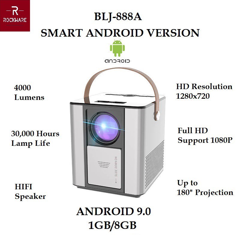 Detail AKN88 -ROCKWARE BLJ-888A Android 9.0 Version - HD Projector 4000 Lumens