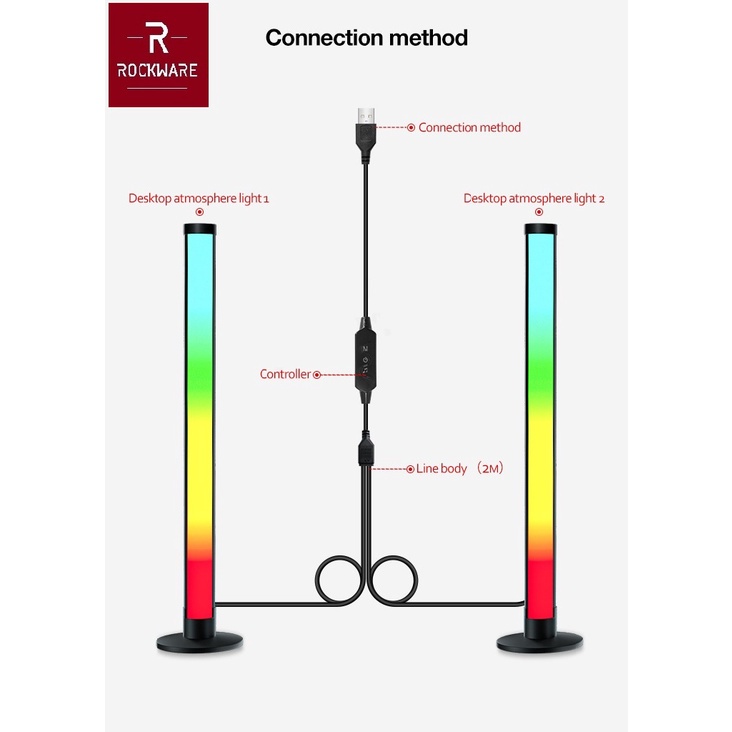 Detail AKN88 - ROCKWARE LED RGB Magic Color Desktop Table Light Set - Set Lampu isi 2