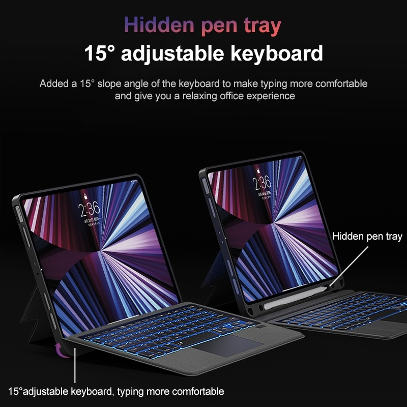 Main Features: - Foldable design of keyboard and leather case - Precise cutting, easy access to all buttons and ports - Multi-angle bracket and hidden pen slot, easy to use - 15 degree adjustable keyboard, typing more comfortable - Intelligent sleep/wake up, magnetic closure