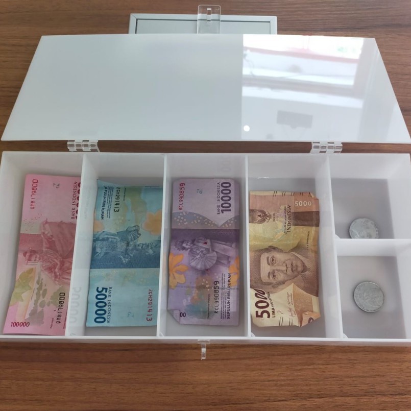 Akrilik tempat penyimpanan uang menyimpan uang dengan lebih rapih