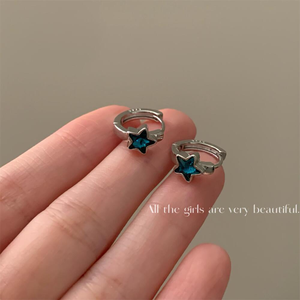 Detail Aksesoris Anting Bintang Berujung Lima Biru Sederhana Dan Halus
