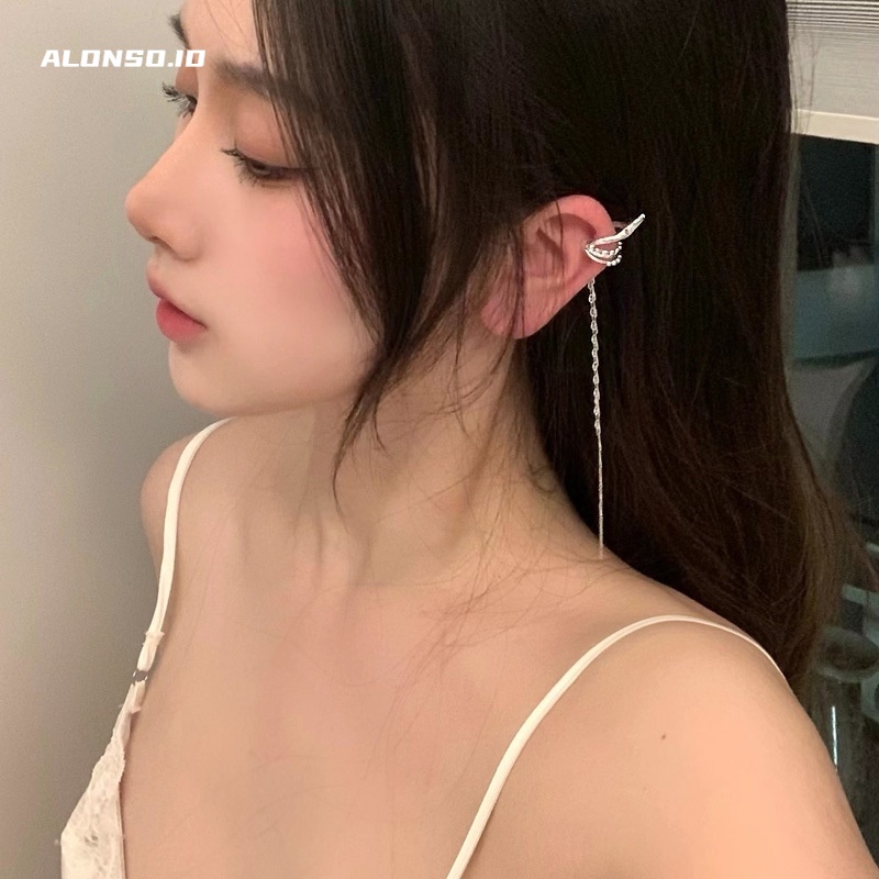 Detail Aksesoris Anting Rantai Geometris Klip Telinga Panjang Retro Sederhana
