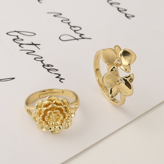 Eropa dan Amerika ins keren ornamen Baru emas 18K bunga terbuka cincin wanita cincin