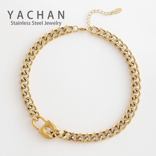 Titanium baja klavikula kalung 14K emas disepuh kunci liontin Kuba link rantai Eropa dan Amerika fas