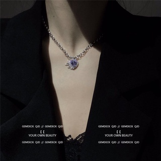 VIOHI zirkon ungu cinta liontin kalung untuk Wanita cahaya mewah minoritas 2021 baru trendi sederhan