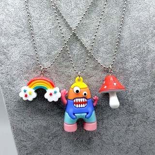 Boneka pelangi jamur rakasa liontin kalung ornamen ins sederhana stainless steel manik-manik kalung