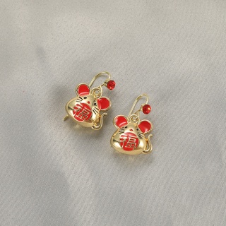 Merah tikus kecil 2020 gaya Cina Beruntung Tahun tikus cute Beruntung Musim Semi anting-anting Korea