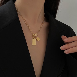 Eropa dan Amerika bulat piring liontin sweter jaringan hip hop kalung wanita niche desain logam rant