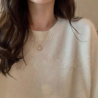 Titanium baja tidak memudar bulat surat cinta double layer twin kalung klavikula rantai rantai leher