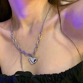 Mosaik hitam Cinta pixel peach jantung double-layer ditumpuk kalung ins dingin gaya hip hop liontin