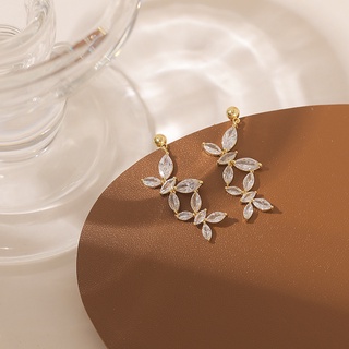 Korea Selatan Dongdaemun 2 perak Kristal jarum berongga anting-anting Super fairy kelopak hipster al