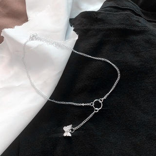 Double layer twin butterfly kalung wanita kalung cross hip hop trendi keren Tahun Baru sweater jarin