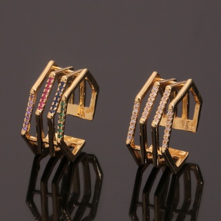 Eropa dan Amerika baru geometris multilayer cincin tembaga bertatahkan warna zirkon perhiasan tangan