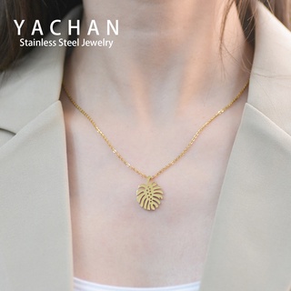 14K emas emas daun stainless steel liontin kalung hipster indah glossy logam titanium baja klavikula