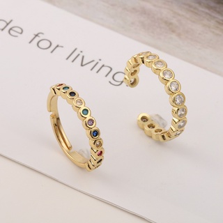 Baru populer perhiasan tangan tembaga mikro bertatahkan zirkon cincin geometris wanita pembukaan cin