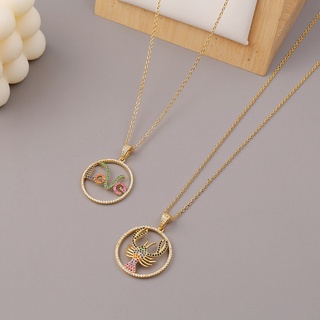Eropa dan Amerika perhiasan kata kerangka kalung tembaga plating 18K emas warna mikro bertatahkan zi