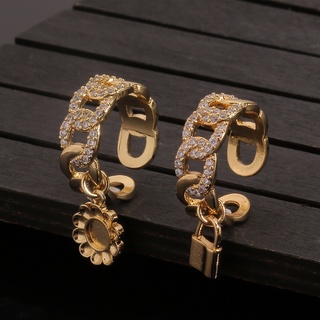 Niche drip mengkilap papan catur kotak-kotak hitam dan putih desain cincin wanita in blogger vintage