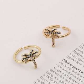 Ornamen kelapa warna open-end zirkon cincin pria dan wanita trendi geometris gaya dingin kecil Pranc