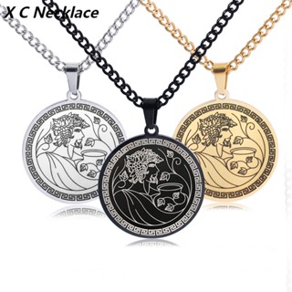 [X C Kalung] Emas & Perak Baru Hip-hop Punk Retro Yunani Mitologi Dewi Athena Titanium Steel Liontin Kalung Anti Karat Untuk Pria Dan Wanita Hadiah Liburan Perhiasan