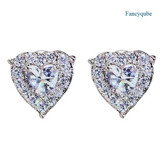 Fancyqube Anting Giwang Sterling Silver 925 Model Hati Dengan Kristal + Berlian Imitasi Untuk Wanita