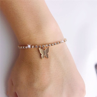 Gelang Rantai Liontin Kupu-Kupu Aksen Berlian Gaya Korea Untuk Wanita