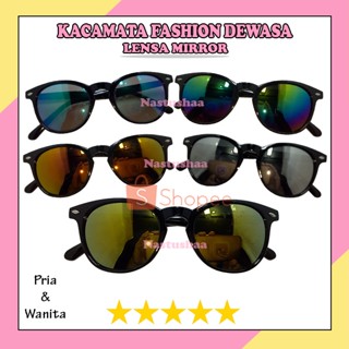 Kacamata Hitam Sunglasses UV Protection Lensa Mirror Bingkai Oval Kaca Mata Fashion Gaya Untuk Pria dan Wanita FREECASE