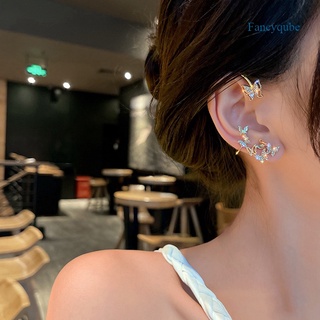 Fancyqube Anting Klip Telinga Bentuk Kupu-Kupu Bahan Metal Lapis Emas Aksen Zircon Gaya Perancis Untuk Wanita