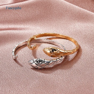 Fancyqube Gelang Tangan Model Terbuka Adjustable Desain Ular Emas Hias Zircon Berlian Imitasi Untuk Wanita
