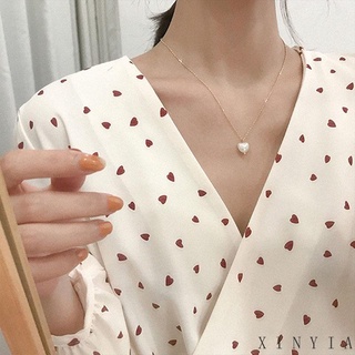 Xia.id Kalung Rantai Clavicle Desain Hati Hias Mutiara Aksesoris Wanita