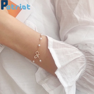 Gelang Rantai Emas Hias Liontin Pita Mutiara Untuk Wanita