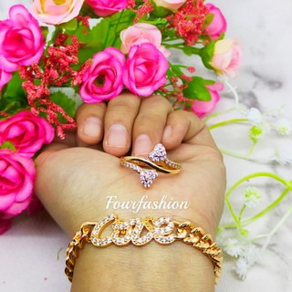 Fourfashion Set Perhiasan Gelang+Cincin Love Permata Kekinian PD044