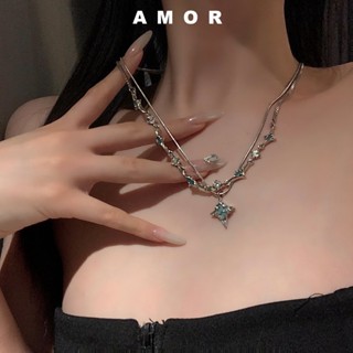 Kalung choker zircon Bintang Biru Berlapis Ganda Perempuan Musim Panas