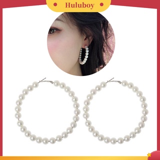 Anting Hoop Juntai Bentuk Lingkaran Besar Aksen Mutiara Tiruan Gaya Elegan Untuk Wanita