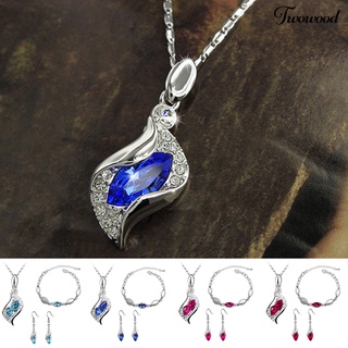 Twowood 2Pcs/Set Exaggerated Noble Beautiful Necklace Earrings Multicolor Water Drop Faux Gem Pendant Necklace Earrings Jewelry Accessory