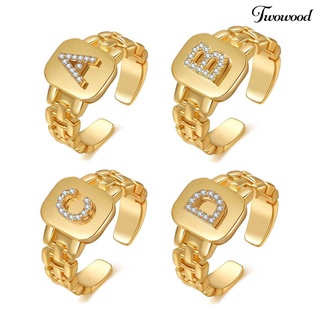 Cincin Model Terbuka Adjustable Desain 26 Huruf Aksen Berlian Imitasi Untuk Unisex