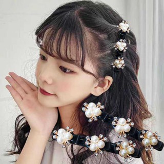Jepit Rambut Bunga Mutiara Akrilik Gaya Korea Baru Untuk Gadis Berlian Imitasi Manis Lucu Poni Jepit Samping Elastis Duckbill Clip