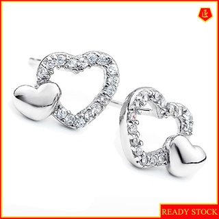 [Ready Stock]925 Silver Fashion Double-Heart Diamond Stud Earrings