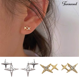 1 Pasang Anting Stud Bentuk Bintang Aksen Berlian Imitasi Gaya Korea Untuk Perhiasan Harian