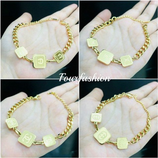 Fourfashion Gelang Titanium Wanita Rantai Plat Permata Kekinian S076