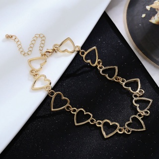 Korea Gelang Fashion Logam Cinta Hati Batu Permata Bertatahkan Wanita Perhiasan Aksesoris