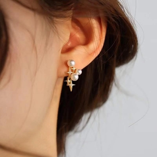 Berlian Berkilau Anting Mutiara Bintang Berujung Empat Aksesoris Telinga Korea Wanita