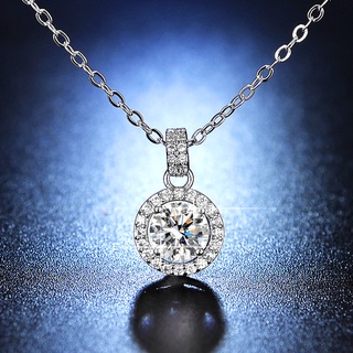 925 perak murni Kalung Liontin Klavikula Berlian Bulat Mewah untuk Wanita Moissanite Gaya Korea Fashion Perhiasan Sederhana
