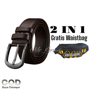 PAKET TAMPIL KEREN 2 IN 1 Ikat Pinggang Pria/Sabuk Kulit/Gesper GRATIS WAISTBAG