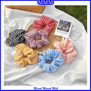 MMM IKAT RAMBUT SCRUNCHIE ELASTIS MOTIF KOTAK GARIS BAHAN KATUN GAYA KOREA ISI 3 PCS FREE POUCH
